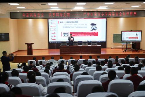 东方小学也开展了网络安全知识讲座,来自广安区司法局的干部以网络安全与反诈骗为切入点,从诈骗电话、诈骗信息、售卖保健品等方面举例进行讲解,教他们如何防范,使学生们对一些基本网络陷阱有了清楚地认识。同时该校还精心制作了图文并茂的网络安全宣传和防范电信诈骗展板摆放在在操场上供学生观看。