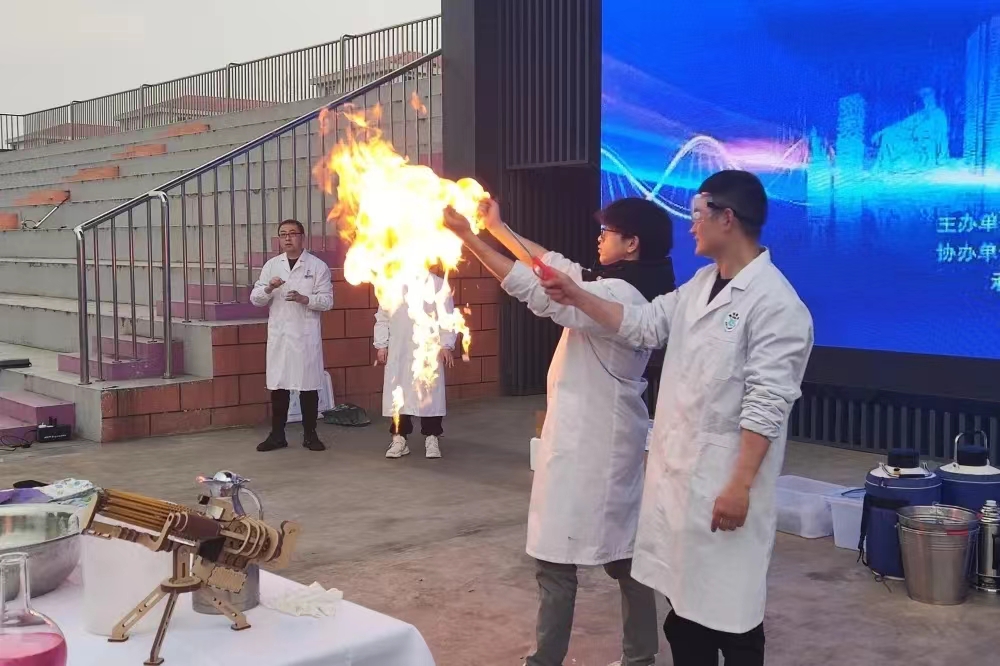 活动现场设置了科普仪器互动、无人机表演、机器人展示、航模表演、科学实验台等板块,同学们自行选择各自喜欢的科普板块,动手实践操作,切身感受科技带来的奇妙体验。