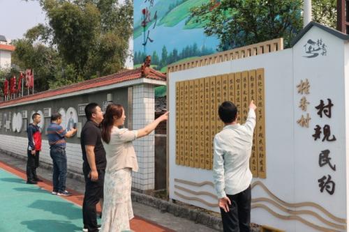 乘着廉洁公交继续向前,就来到了“亲民之路”的第二站——“三彭故里”桂香村。“红白喜事易从简,移风易俗节约钱”“大家都把规矩守,文明富强有追求”……漫步在桂香村的淑香长廊,沿壁一条条村规民约、一个个家风故事、一幅幅清廉漫画赫然醒目,不禁让干部群众驻足观看,在怡然游乐中感受到文化熏陶。