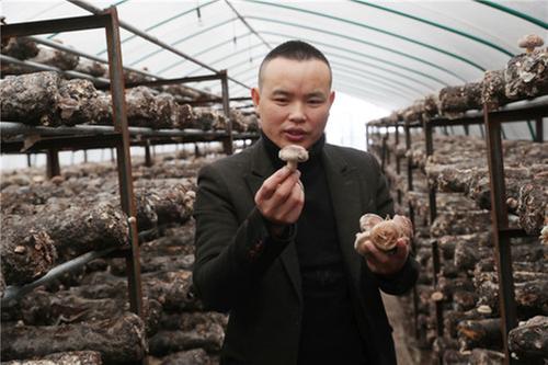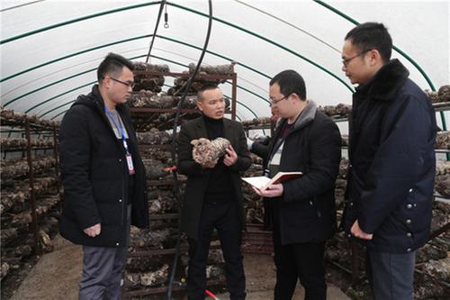 11月30日,广安市广安区龙台镇四缸香菇产业基地生产大棚内,区政协委员、基地业主李森林正在向前来调研的镇纪委干部介绍香菇产业助农增收情况和发展前景。