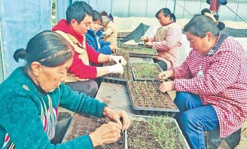 近日,巴中市南江县公山镇耘籽家庭农场的工人在县农业农村局科技特派员的指导下,在大棚育苗软盘中精心假植培育番茄苗。