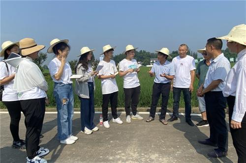 由青神县农业农村局、县科协和县妇联联合邀请的四川农业大学水稻研究所专家廖泳祥也来到高台镇田间地头,开展“科技增粮 守护粮仓”主题稻田研学活动,就水稻田间管理技术与种粮大户、农资供应商、水稻合作社、中国农大在青研究生等进行现场交流。