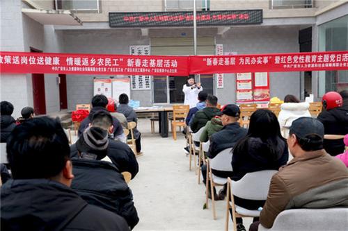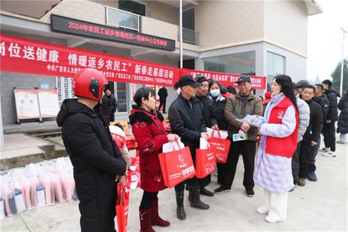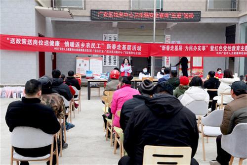 1月31日,通过驻村第一书记刘玉明牵线搭桥,广安市人社局联合党支部、广安区总工会、广安区农民工服务中心、广安区悦来中心卫生院在广安区悦来镇高兴村举行“送政策送岗位送健康 情暖返乡农民工”新春走基层活动。