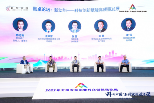 当天的圆桌论坛环节,以“新动能——科技创新赋能高质量发展”为主题,围绕科技经济融合、创新要素融通、创业带动就业等热点话题展开。圆桌论坛由创兴动力创始人、董事长陈志刚主持,四川长虹创新投资有限公司总经理孟家富,聚励资本执行董事张喆,荣事达工业互联网研究院执行院长陈勇,杭州国芯科技副总裁凌云等嘉宾参与互动交流,发表行业洞见。