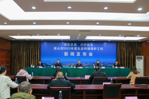 2月9日,眉山市召开“绿色发展 共护蓝天”——2023年生态环境保护工作新闻发布会。市生态环境局、市经济和信息化局、市住房和城乡建设局、市公安局等四部门分别向媒体介绍了2023年1月大气环境质量状况及2023年大气污染源整治工作计划。多家媒体参加新闻发布会。