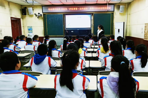 活动中,邻水县司法局丰禾司法所所长、丰禾小学法治副校长吴宇一行来到丰禾小学五年级五班教室,先后为55名学生举行了“邻水县新时代普法联盟2022 年‘护航青春·法伴成长’法治进校园”和“邻水县司法局 2022 年‘护航青春·法伴成长’报春鸟法治进校园”为主题的法治讲座。课堂上别开生面、丰富多彩,吴宇根据学生年龄段,在授课前做了精心准备,课堂上利用视频、PPT、动画片等形式,通过身边人、身边事和自身亲历,做到讲课题材内容鲜活易懂。此外,吴宇还把法治教育与思想品德教育、纪律教育相结合,把反面典型教育与正面教育、全面教育与个别教育与日常行为规范达标、依法治校相结合。课堂上,学生们纷纷提问和答题,互动性强,确保了课堂法治宣传效果。通过约两个小时的讲解和听课,大家感觉时间过得很快,学生们想继续学,法治老师也想继续讲,他们都表示希望下次早日参加这样的法治进校园活动。