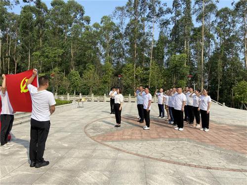 重走红军路。大家走进红色西山烈士陵园,面对庄严肃穆的纪念碑,全体人员整齐列队,向革命先烈敬献鲜花、默哀致敬、瞻仰革命烈士碑,表达对革命先烈的深切缅怀和无限敬仰。在鲜红的党旗下,全体参观党员佩戴党徽,面向党旗,郑重举起右手,握紧拳头,集体重温了入党誓词,一句句铿锵有力、掷地有声的誓词再一次点燃了党员干部们爱党敬党的激情和永远跟党走的决心。