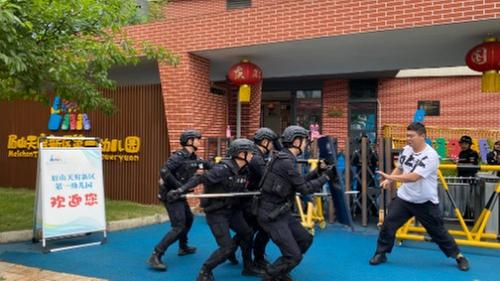 为强化幼儿园职工应急意识,提高处置突发暴力事件的能力,确保在危险来临时能够快速、有序、高效地实施避险疏散和有效处置,近日,眉山市公安局天府新区分局特巡警大队联合天府新区第一幼儿园开展反恐防暴演练。