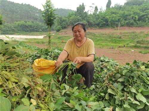近日,乐山市市中区剑峰镇东旗村的80亩毛豆喜获丰收,村民们正在田野里采收,享受丰收的喜悦。
