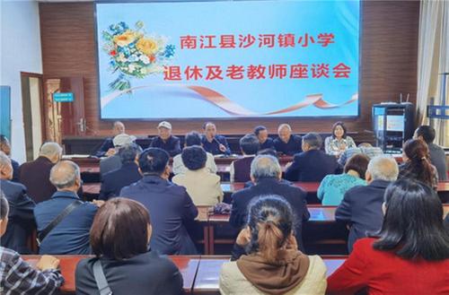 4月16日,巴中市南江县沙河镇小学召开退休教师座谈会,37名退休教师、全体行政人员以及部分教师代表参加会议,会议由副校长陈江主持。