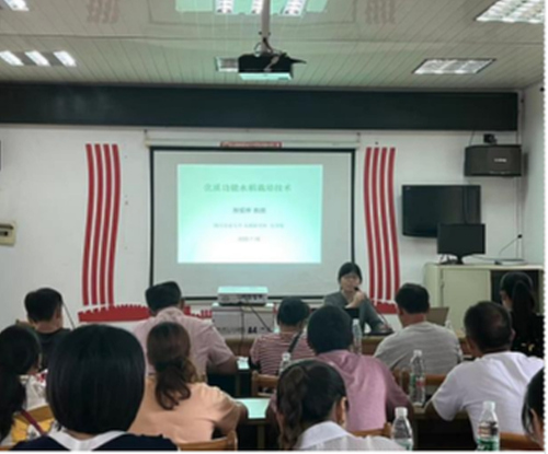 郑爱萍教授以“优质功能水稻栽培技术”为主题,从我国水稻育种概况和主要成就、我国水稻分类、水稻的生长发育过程、水稻的主要病害与防治、科学施肥、科学用药技术等方面向农户们讲解了如何更好地“绿色”地防虫治虫,达成农药化肥的减量增效。对稻曲病、纹枯病、二化螟(俗称钻心虫)等常见的病虫害问题以及如何降低水稻含铬等重金属问题提出了绿色有效的应对方法,并推荐了部分病虫害防治实用农药。