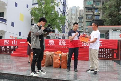 区人防办的领导还为彭山一小捐赠了100套急救包,区教育局副局长许勇到现场进行指导。