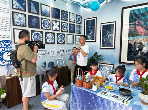 展览现场,枣山小学校的学生们展示了他们亲手制作的扎染作品。这些作品色彩斑斓、图案独特,不仅展示了学生们的艺术才华,更体现了他们对传统文化的热爱与传承。学生们用灵巧的双手,将一块块普通的布料,通过捆扎、染色等工艺,变成了一件件精美的艺术品。