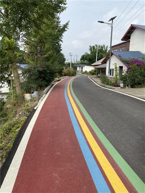 映入眼帘的路容路貌发生了翻天覆地的变化……一条掩映在竹林中别致的柏油公路,总长3.9公里、宽5.5米,不再是单调的黑白色,而是以鲜艳的红、黄、绿、蓝为标线和跑道增色添彩,与周边的自然环境浑然天成,给人耳目一新的感觉。