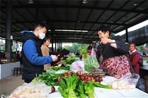 翠绿地垄生机勃发、红砖小埂齐整交错,一走进位于眉山市青神县西龙镇龙凤新区安置区的农贸市场,市场两边连片的菜园子特别“打眼”。