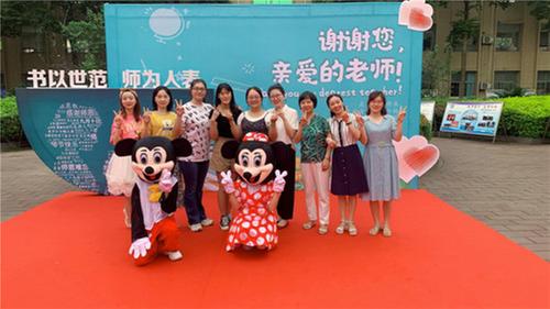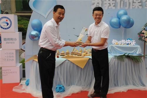 在各学科背景墙前,学校为每位教师都精心准备了一份特别的惊喜——一块精致的蛋糕,每块蛋糕上都地刻着老师们的名字,在欢声笑语中,老师们品尝着甜甜的蛋糕,感受着校园的温馨气氛。