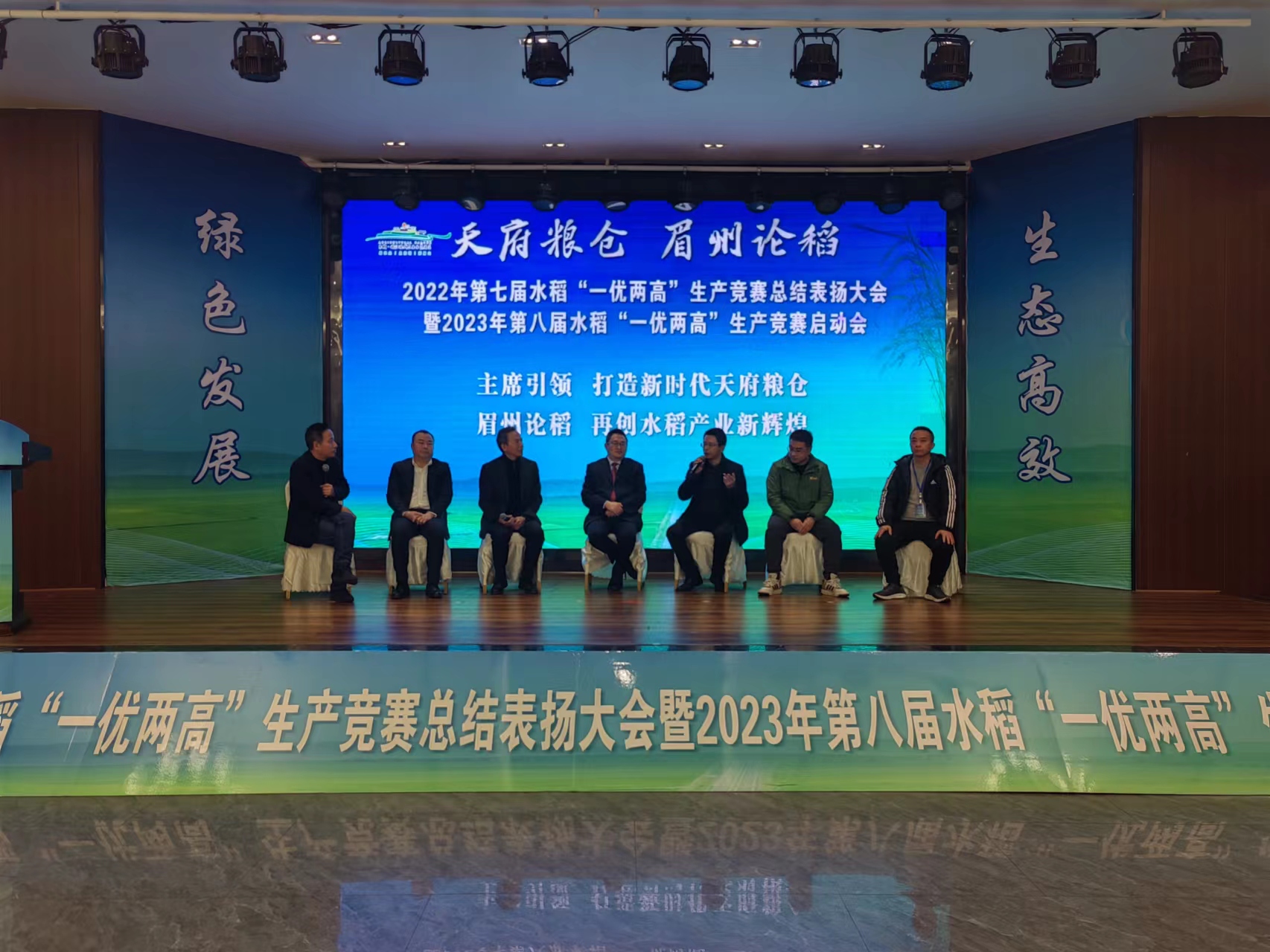 稻谷飘香物阜民丰。2月17日,眉山市东坡区2022年第七届水稻“一优两高”生产竞赛总结表扬大会暨2023年第八届水稻“一优两高”生产竞赛启动会在该区太和镇金光村举行。本次会议由眉山市东坡区人民政府、眉山职业技术学院、眉山市农业农村局、四川农业大学水稻研究所联合主办。