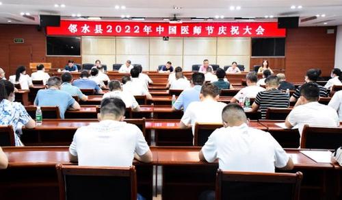 为庆祝第五个中国医师节,大力弘扬新时代医师“敬佑生命、救死扶伤、甘于奉献、大爱无疆”的崇高职业精神,展现邻水县医疗人员在疫情防控、医疗救治工作上勇于奉献的职业风范,进一步推动全社会形成尊医重卫的良好氛围,8月18日下午,广安市邻水县卫健系统召开了2022年中国医师节庆祝大会。副县长刘强出席活动并讲话,县卫生健康局党委书记、局长陆涛主持会议。