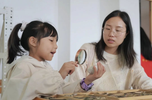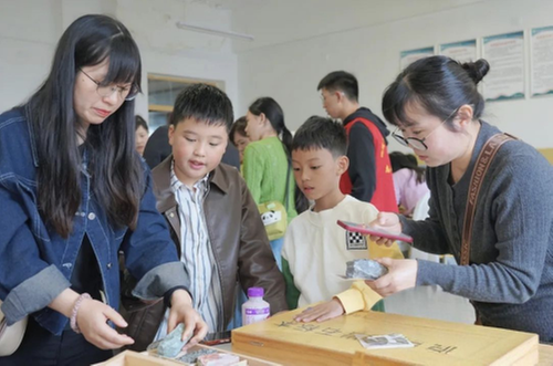 活动现场,内江市地理科普基地的老师围绕岩石知识展开科普,详细讲解了岩石的种类、形成过程及相关科学常识,带领大家走进岩石的世界,让参与者对不同种类的岩石有了系统认识。为了让科普知识更易被接受和掌握,活动还设置了趣味互动环节,通过“岩石照片与标本对应”小游戏、岩石小知识问答等形式,充分调动孩子们的积极性,让大家在轻松愉快的氛围中巩固所学知识。随后,大家有序参观了地质科普室,近距离欣赏各类岩石及化石标本,直观感受地球地质演变的奇妙,不少孩子驻足观察、认真询问,对地质科学的好奇心被充分激发。