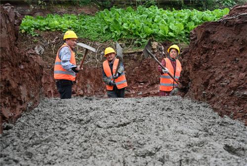 1月3日,内江市东兴区田家镇七家嘴社区,济南城建的建设者们趁着晴好天气修建水渠、田埂等农田附属设施,把贫瘠的土地焕发出新的生机,变身成为“希望田”。