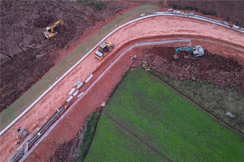 12月21日,在位于内江市东兴区田家镇旦家村的长江现代农业园区环线公路施工现场,中国五冶集团的建设者正在加紧施工。
