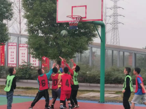 本次运动会由高年级的班级篮球赛拉开序幕。比赛开始前,操场周围坐满了前来观看的同学,参加比赛的队员们更是热情高涨,跃跃欲试。随着裁判的一声哨响,高高抛起的篮球点燃了篮球赛的激情,现场加油声、呐喊声不绝于耳,现场气氛急剧攀升。对战双方抢球、断球、防守、进攻;严守硬对、激烈争夺、默契传球、完美配合,赢得了场下观众们的阵阵喝彩声。