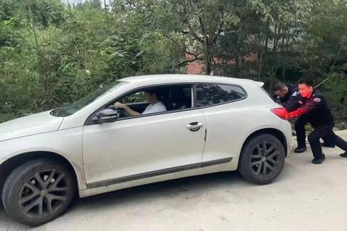 10月10日,石永派出所副所长蒋勇、民警庞鑫、辅警张辉在县城办案结束后,驾驶警车返回所内值班途中,在经过325乡道袁市镇黄金村一狭窄路段时,发现一辆白色私家车整车右侧掉入路边深坑中,车主站在公路上焦急地打电话,其亲属站在一旁也是束手无策,民警立即下车询问是否需要帮助并将警车开到前方空旷地带。