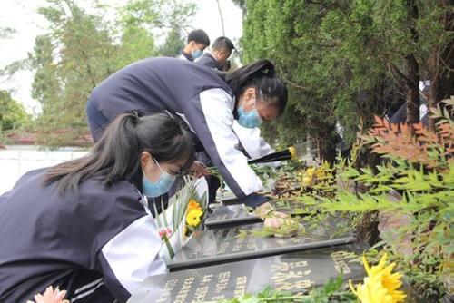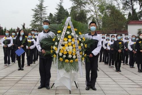 在清明来临之际,为悼念革命烈士,缅怀先烈的丰功伟绩,教育学生继承先烈遗志,发奋图强,振兴中华,4月1日上午,四川省简阳市高级职业中学师生代表一行到简阳市革命烈士陵园开展“缅怀革命先烈”祭奠活动。