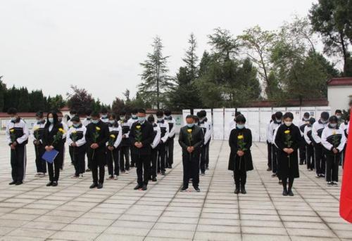 上午11点,公祭活动仪式在庄严的国歌声中拉开帷幕。师生们在革命烈士纪念碑前三鞠躬,默哀一分钟,向英烈寄托哀思、致敬缅怀。