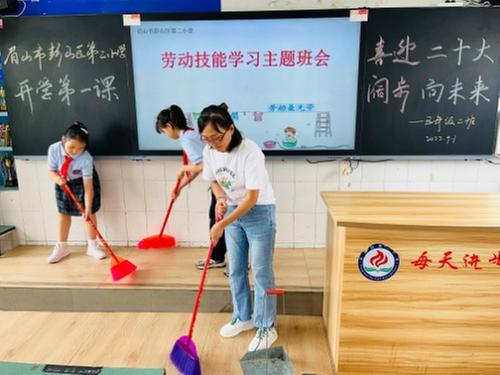 9月1日,微风徐徐,眉山市彭山二小开展“开学第一课”,组织同学们观看了“开学第一课”视频,开展了“劳动最光荣、安全最重要、服务最暖心、互助最美丽”系列活动,暖人又暖心。