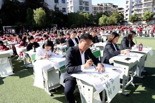 丹青书盛世,翰墨颂华章。为迎接党的二十大胜利召开,激发师生书法兴趣、鼓励家长主动融入学校教育,打造墨香校园,当日,广安区东方小学举办“喜迎二十大 丹青颂党恩”家长师生千人书法才艺大比拼活动。