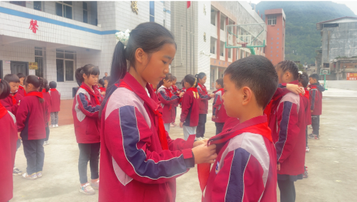 10月13日,巴中市南江县大河镇小学第二批少先队新队员入队仪式举行,50余名小学生光荣加入少年先锋队。