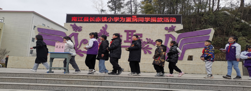 “一元、两元、十元、一百元……”2月28日,巴中市南江县长赤镇小学全体师生为重病学生现场捐款。