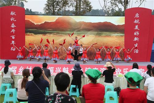 广安本土知名歌手张夏丽上台演唱的是由龙台镇打造的一首原创歌曲龙台,我的老家》,感情真挚,引发阵阵掌声。“这首歌目前在抖音上,它的转发量和点赞量已经达到了一万以上。我想通过它,希望更多的人走进龙台,了解龙台,助力龙台乡村振兴。”此外,大龙镇演出的歌舞《美丽心情》、官盛镇的舞蹈《欢喜中国梦》、东岳镇的《振农连厢乐翻天》、兴平镇的舞龙《龙腾盛世华夏兴 祝福祖国永太平》、大安镇的竹板《大安新气象》、浓溪镇的快板舞《新浓溪心向党》等节目都获得点赞。