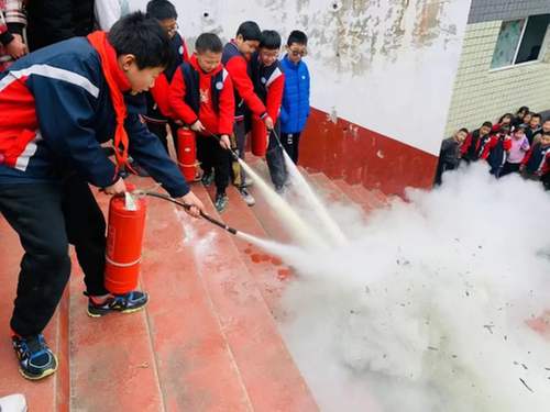 随后,安监室张波主任详细讲解了干粉灭火器的使用方法,并进行了现场演示。演示完后,在场的师生进行实操练习,掌握了“提、拔、握、压”的使用步骤。