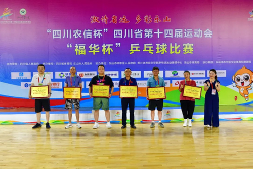 “四川农信杯”四川省第十四届运动会“福华杯”乒乓球比赛经过6天的激烈角逐后,于7月29日在乐山市奥体中心圆满收官。