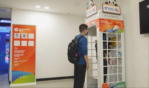 而在比赛场馆内的运动员通道、技术官员通道及媒体用餐区,还设置了三座国际长途电话亭,内部配置有专用话机、防疫消毒设施和国际长途拨打指南,为赛事提供通信服务。