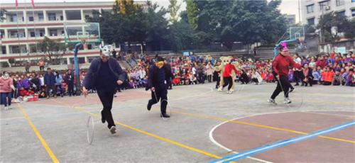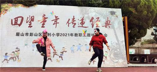 11月18日下午,在眉山市彭山区鹏利小学2021年冬季体质检测达标运动会闭幕式上,鹏利小学教师进行了“回望童年,传递经典”为主题的趣味运动表演。