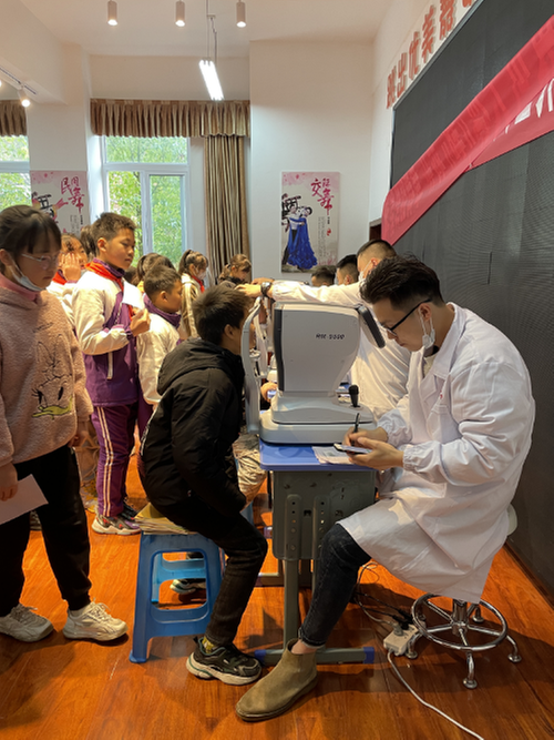 现场,医护人员根据学生的年龄特点、视力发展水平,作出诊断并逐一登记,并认真、详细地整理、统计、上传相关数据,整个视力筛查现场秩序井然。视力筛查既是学校关爱学生、关注学生健康的表现,也是学校防控近视的重要举措。同时,学校也会对学生视力健康数据进行研判分析,从中找出学生视力发展变化趋势,为今后视力健康教育工作提供翔实的资料。
