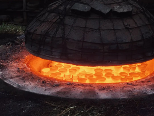 为了突显金工作品的精致与灿烂,项目团队决定利用资源条件学习国家级非遗黑砂制作技艺,使部分文创作品最终“以黑砂为器,金工为饰”实现二者创造性结合。学习期间,该馆馆长叶骁老师为项目团队成员进行过现场讲座授课,并带领大家到传统烧窑厂(俗称“馒头窑”)亲自演示并讲解了黑砂器物的古法烧制技术。从开始的模具放置到加碳点火,再到封窑控温、等待成型,包括最后开窑取器、降温封存,场景颇为震撼。团队成员学习并记录了整个烧窑过程,纷纷见证了民间传统技艺中蕴含古人的集体智慧。通过观摩精彩的烧窑步骤,大家对黑砂与金工两种技艺结合的实践构想有了更深的认识。