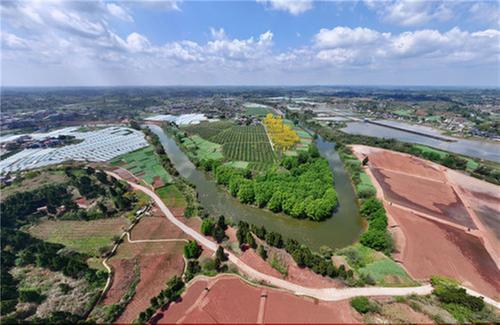 4月2日,内江市东兴区石子镇太和村,金黄的黄花风铃木在春日的暖阳下熠熠生辉,与周边农田、村庄共同构成了美丽的乡村画卷。