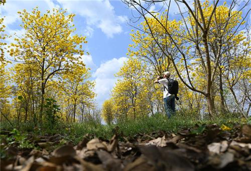 连日来,随着气温回暖,内江市东兴区石子镇太和村大片大片的黄花风铃木在春日阳光的沐浴下竞相怒放,迎来一年中最美的季节,吸引了当地群众和川渝周边游客前来赏花度假,打卡游玩。