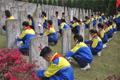 活动现场,全体少先队员齐声高唱《中国少年先锋队队歌》,嘹亮的歌声响彻整个烈士陵园。随后,全体人员为革命烈士献花篮、队员们重温入队誓词、向革命烈士敬献菊花等。仪式后,队员们在工作人员的指引下,瞻仰革命烈士陵园、擦洗墓碑等。少先队员们通过身临其境的体验,更加深刻地理解了先烈们为国家和人民所做出的巨大牺牲。